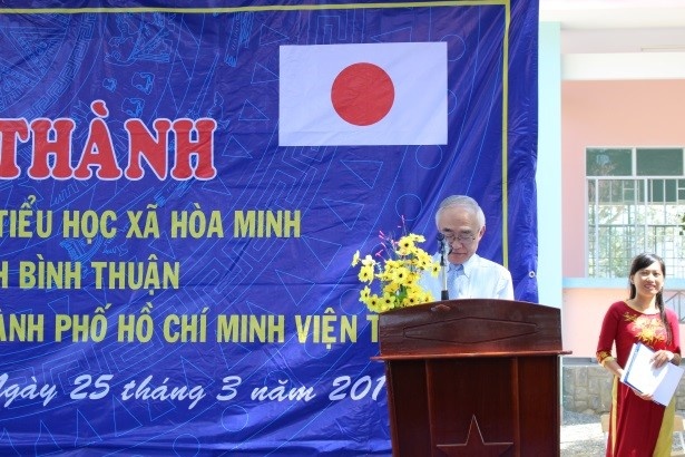 Thứ Sáu ngày 25 tháng 03 năm 2016, Lễ bàn giao “Dự án xây dựng trường tiểu học – mầm non xã Hòa Minh, huyện Tuy Phong, tỉnh Bình Thuận” (thực hiện năm 2013) trong khuôn khổ Chương trình viện trợ không hoàn lại cấp cơ sở của Chính phủ Nhật Bản đã diễn ra tại trường tiểu học – mầm non xã Hòa Minh với sự hiện diện của ông NAKAJIMA Satoshi, Tổng lãnh sự Nhật Bản tại Thành phố Hồ Chí Minh, ông Dương Hồng Sơn, Phó chủ tịch Ủy ban nhân dân huyện Tuy Phong, ông Huỳnh Đoàn Thanh Trí, Chủ tịch Ủy ban nhân dân xã Hòa Minh, ông Hồ Hữu Lộc, Hiệu trưởng trường tiểu học xã Hòa Minh, bà Hàng Thị Mỹ Trang, Hiệu trưởng trường mầm non xã Hòa Minh.
